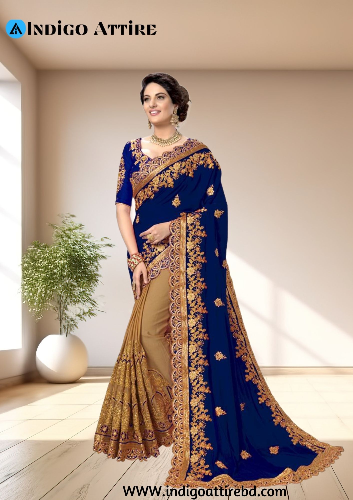 শাড়ির রঙ: ব্লু এবং বিস্কুট