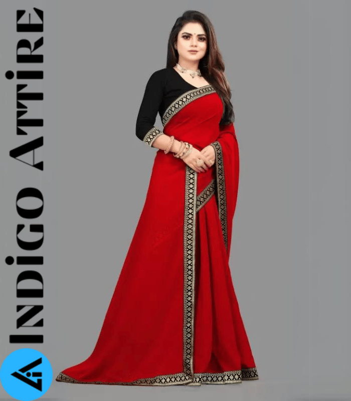 এই লাল কালারের শাড়ি টি ইন্ডিয়ান ওয়েটলেস সফট জর্জেট ফ্যাব্রিক দিয়ে তৈরী করা এবং সাইড প্যানেল এ এম্ব্রডারির কাজ করা যেকোনো বিশেষ অনুষ্ঠানের পরিধানের জন্য উপযুক্ত।