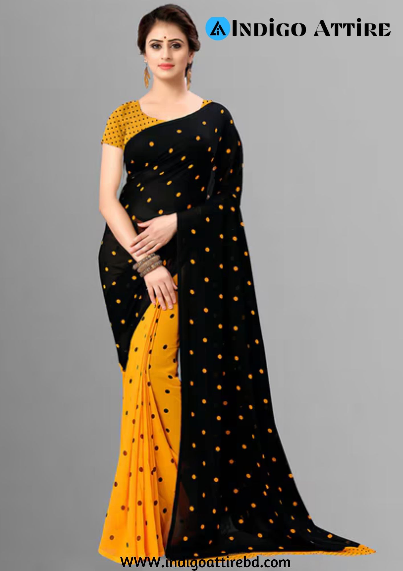 এই কালো ও হলুদ কালারের শাড়ি টি ইন্ডিয়ান ওয়েটলেস সফট জর্জেট ফ্যাব্রিক দিয়ে তৈরী করা এবং সম্পূর্ণ শাড়ির আঁচল ও কুঁচি জুড়ে কালো ও হলুদ কালার সুতার এমব্রয়ডারি কাজ এটিকে আরও আকর্ষণীয় করে তোলে এবং যেকোনো বিশেষ অনুষ্ঠানের পরিধানের জন্য উপযুক্ত।