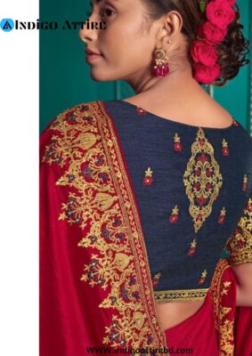 বিঃদ্রঃ এই শাড়িটিতে প্রায় ১৩ হাত পর্যন্ত চওড়া এবং ম্যাচিং করা একটি ব্লাউজের পিস্ থাকবে যা সেলাইবিহীন। আপনার পছন্দ অনুযায়ী সেলাই করে নিতে হবে।