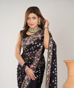 ইমপোর্টেড ওয়েটলেস সফট জর্জেট ফেব্রিকের মধ্যে গর্জিয়াস এমব্রয়ডারি কাজ করা পার্টি শাড়ি।