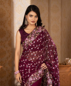 ইমপোর্টেড ওয়েটলেস সফট জর্জেট ফেব্রিকের মধ্যে গর্জিয়াস এমব্রয়ডারি কাজ করা পার্টি শাড়ি।