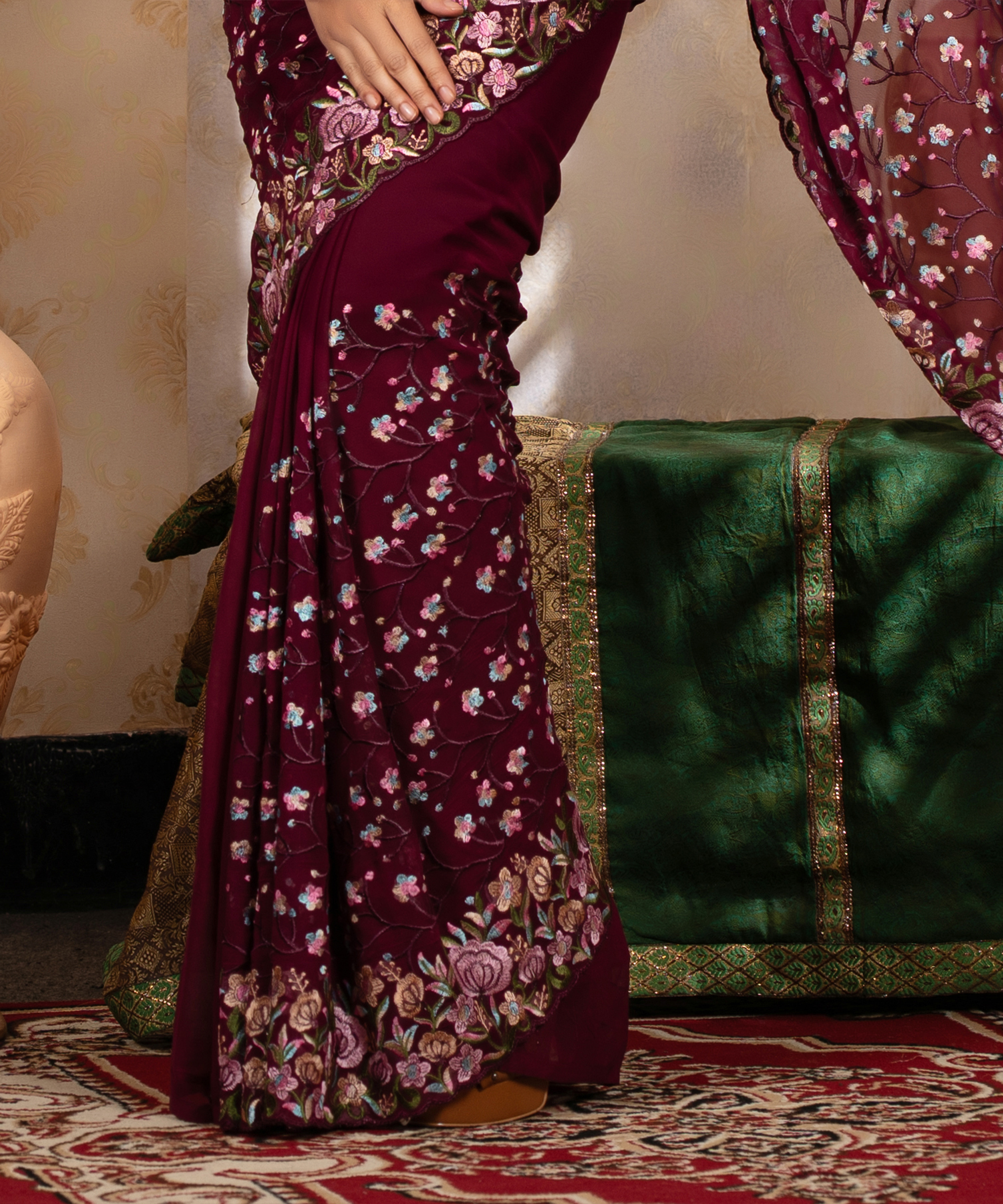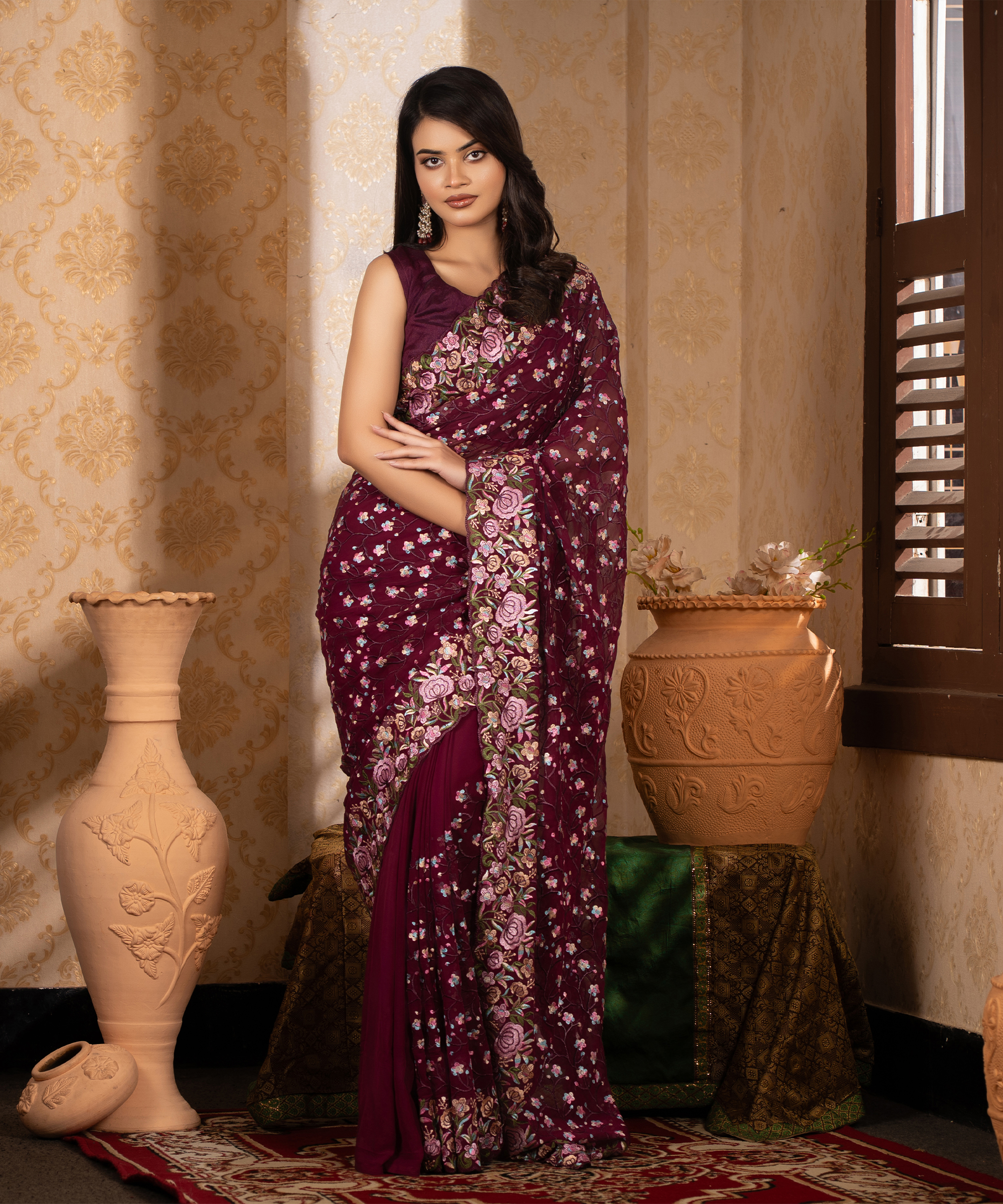 ইমপোর্টেড ওয়েটলেস সফট জর্জেট ফেব্রিকের মধ্যে গর্জিয়াস এমব্রয়ডারি কাজ করা পার্টি শাড়ি।