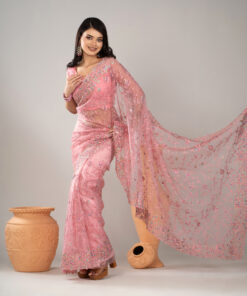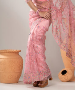 Imported Soft Organza Pink Party Saree With Gorgeous Blouse Piece