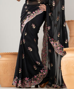 Imported Soft Weightless Georgette Fabric Black Embroidery Party Saree With Blouse Piece